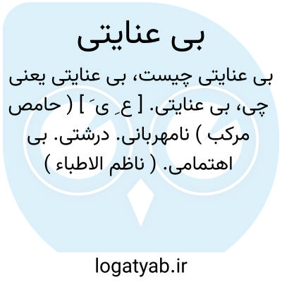 بی عنایتی. [ ع ِ ی َ ] ( حامص مرکب ) نامهربانی. درشتی. بی اهتمامی. ( ناظم الاطباء )