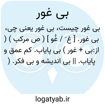 بی غور. [ غ َ / غُو ] ( ص مرکب ) ( از:بی + غور ) بی پایاب. کم عمق و پایاب. || بی اندیشه و بی فکر. ( ناظم الاطباء ). رجوع به غور شود.