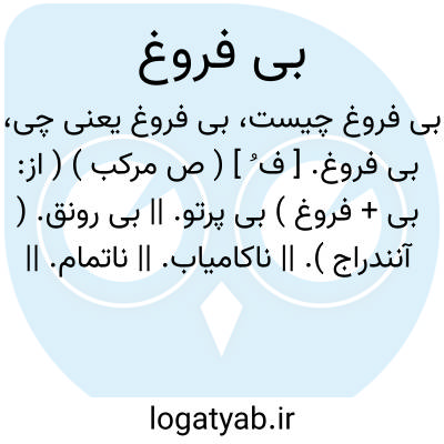 بی فروغ. [ ف ُ ] ( ص مرکب ) ( از: بی + فروغ ) بی پرتو. || بی رونق. ( آنندراج ). || ناکامیاب. || ناتمام. || بی نتیجه. ( ناظم الاطباء ):