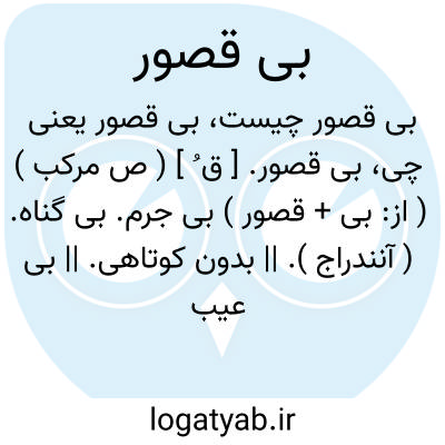 بی قصور. [ ق ُ ] ( ص مرکب ) ( از: بی + قصور ) بی جرم. بی گناه. ( آنندراج ). || بدون کوتاهی. || بی عیب ونقصان. کاملانه. ( ناظم الاطباء ). رجوع به قصور شود.