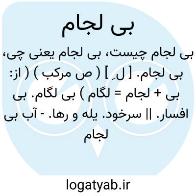 بی لجام. [ ل ِ ] ( ص مرکب ) ( از: بی + لجام = لگام ) بی لگام. بی افسار. || سرخود. یله و رها. - آب بی لجام خورده بودن؛ سر خود بار آمده بودن. ( یادداشت مؤلف ).