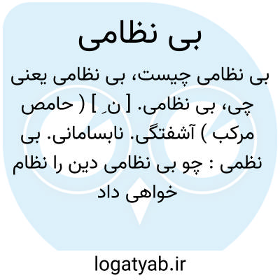بی نظامی. [ ن ِ ] ( حامص مرکب ) آشفتگی. نابسامانی. بی نظمی: