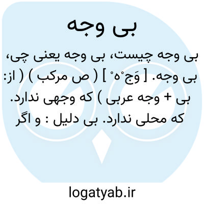 بی وجه. [ وَج ْه ْ ] ( ص مرکب ) ( از: بی + وجه عربی ) که وجهی ندارد. که محلی ندارد. بی دلیل: و اگر بر وفق تصور خویش در آن تصرفی نمایند بلاکلام بی وجه و ناصواب افتد. ( تاریخ رشیدی ). رجوع به وجه شود.