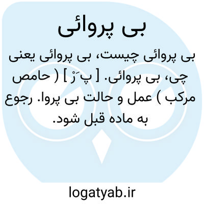 بی پروائی. [ پ َرْ ] ( حامص مرکب ) عمل و حالت بی پروا. رجوع به ماده قبل شود.