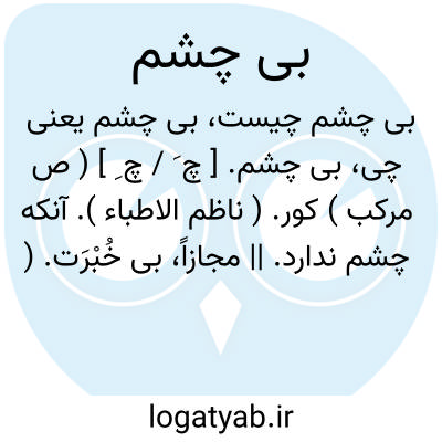 بی چشم. [ چ َ / چ ِ ] ( ص مرکب ) کور. ( ناظم الاطباء ). آنکه چشم ندارد. || مجازاً، بی خُبْرَت. ( یادداشت بخط مؤلف ):
