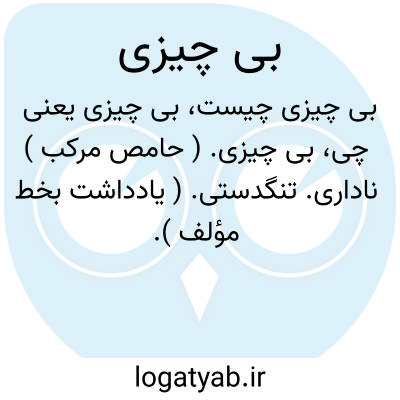 بی چیزی. ( حامص مرکب ) ناداری. تنگدستی. ( یادداشت بخط مؤلف ).