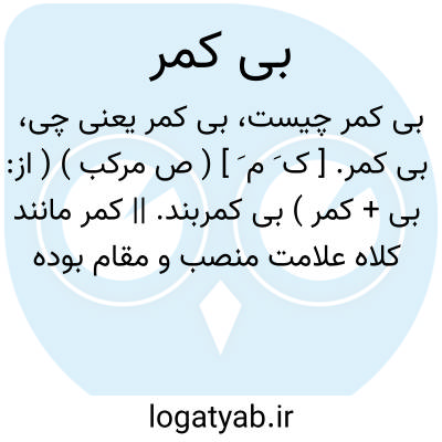 بی کمر. [ ک َ م َ ] ( ص مرکب ) ( از: بی + کمر ) بی کمربند. || کمر مانند کلاه علامت منصب و مقام بوده است و بی کمر کنایه از فاقد منصب و مقام است: