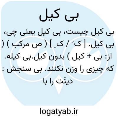 بی کیل. [ ک َ / ک ِ ] ( ص مرکب ) ( از: بی + کیل ) بدون کیل.بی کیله. که چیزی را وزن نکنند. بی سنجش: