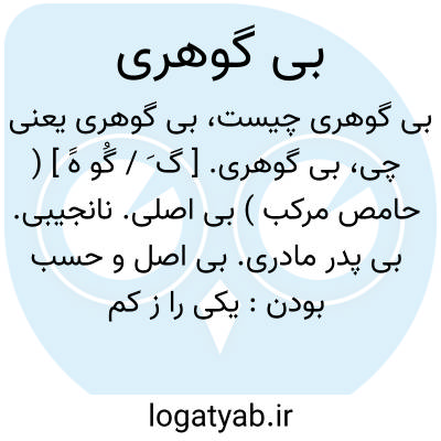 بی گوهری. [ گ َ / گُو هََ ] ( حامص مرکب ) بی اصلی. نانجیبی. بی پدر مادری. بی اصل و حسب بودن: