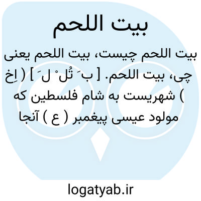 بیت اللحم. [ ب َ تُل ْ ل َ ] ( اِخ ) شهریست به شام فلسطین که مولود عیسی پیغمبر ( ع ) آنجا بوده است. ( حدود العالم ). رجوع به اورشلیم و قدس شود.