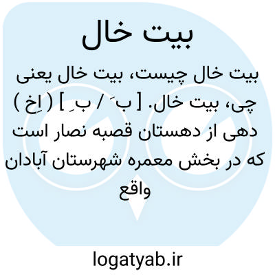بیت خال. [ ب َ / ب ِ ] ( اِخ ) دهی از دهستان قصبه نصار است که در بخش معمره شهرستان آبادان واقع است و 300 تن سکنه دارد. ( از فرهنگ جغرافیائی ایران ج 6 ).