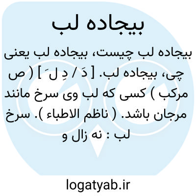 بیجاده لب. [ دَ / دِ ل َ ] ( ص مرکب ) کسی که لب وی سرخ مانند مرجان باشد. ( ناظم الاطباء ). سرخ لب: