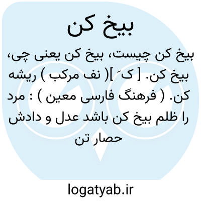 لغت نامه دهخدا بیخ کن. [ ک َ ]( نف مرکب ) ریشه کن. ( فرهنگ فارسی معین ): مرد را ظلم بیخ کن باشدعدل و دادش حصار تن باشد.اوحدی.