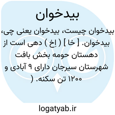 بیدخوان. [ خا ] ( اِخ ) دهی است از دهستان حومه بخش بافت شهرستان سیرجان دارای 9 آبادی و 1200 تن سکنه. ( از فرهنگ جغرافیائی ایران ج 8 ) ( از دائرة المعارف فارسی ).
