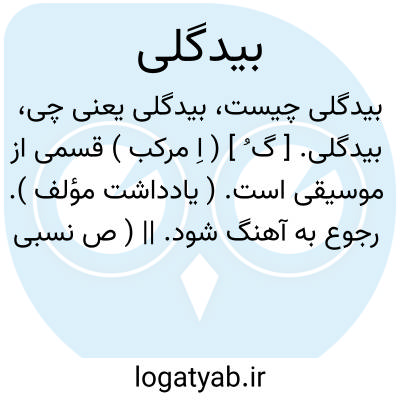 بیدگلی. [ گ ُ ] ( اِ مرکب ) قسمی از موسیقی است. ( یادداشت مؤلف ). رجوع به آهنگ شود. || ( ص نسبی ) منسوب به بیدگل. از مردم بیدگل.
