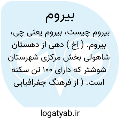 بیروم. ( اِخ ) دهی از دهستان شاهولی بخش مرکزی شهرستان شوشتر که دارای 100 تن سکنه است. ( از فرهنگ جغرافیایی ایران ج 6 ).