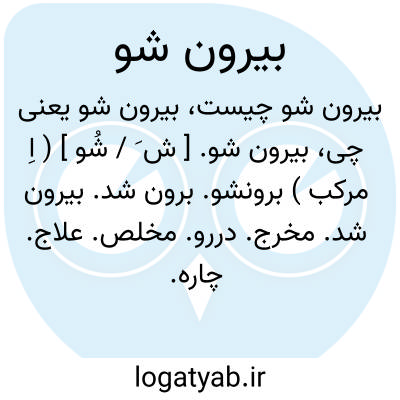 بیرون شو. [ ش َ / شُو ] ( اِ مرکب ) برونشو. برون شد. بیرون شد. مخرج. دررو. مخلص. علاج. چاره. رهایی: