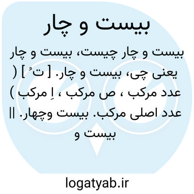 بیست و چار. [ ت ُ ] ( عدد مرکب، ص مرکب، اِ مرکب ) عدد اصلی مرکب. بیست وچهار. || بیست و چار لحن؛ از اصطلاحات موسیقی است. ( یادداشت مؤلف ):