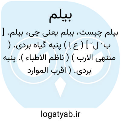 بیلم. [ ب َ ل َ ] ( ع اِ ) پنبه گیاه بردی. ( منتهی الارب ) ( ناظم الاطباء ). پنبه بردی. ( اقرب الموارد ). بردی بفتح باء، گیاهی است که در آب روید و در مصر از آن کاغذ میساختند. ( از منتهی الارب ذیل برد ). لوئی. ( یادداشت مؤلف ). || برمای درودگران. ( منتهی الارب ) ( ناظم الاطباء ). بیلم النجار. لغتی است در بیرم. ( از الصحاح ). رجوع به بیرم شود. || غوزه پنبه. ( ناظم الاطباء ) ( منتهی الارب ). جوزالقطن. ( اقرب الموارد ). || پنبه قصب. ( منتهی الارب ) ( ناظم الاطباء ) ( از اقرب الموارد ). || بچه خرس. ( منتهی الارب ) ( ناظم الاطباء ). ج، بیالم. ( منتهی الارب ).