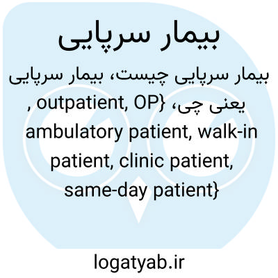 💡 بیمار سرپایی به کسی گفته می‌شود که برای درمان به بیمارستان یا درمانگاه مراجعه می‌کند اما نیاز به بستری شدن در بیمارستان ندارد. به مداوای انجام‌شده بر روی چنین بیماری، «درمان سرپایی» نیز گفته می‌شود.