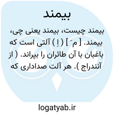 بیمند. [ م َ ] ( اِ ) آلتی است که باغبان با آن طائران را بپراند. ( از آنندراج ). هر آلت صداداری که بواسطه آن طیور را از باغ ترسانیده بیرون کنند. || صفیر آسیا. || زنگی که پاسبانان و خدمتگاران میزنند. ( ناظم الاطباء ).