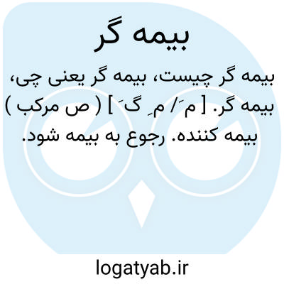 بیمه گر. [ م َ/ م ِ گ َ ] ( ص مرکب ) بیمه کننده. رجوع به بیمه شود.