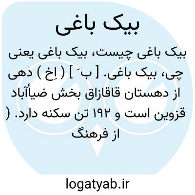 بیک باغی. [ ب َ ] ( اِخ ) دهی از دهستان قاقازاق بخش ضیأآباد قزوین است و 192 تن سکنه دارد. ( از فرهنگ جغرافیایی ایران ج 1 ).