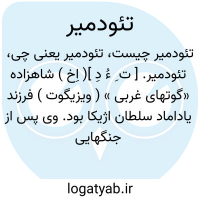 تئودمیر. [ ت ِ ءُ دِ ]( اِخ ) شاهزاده «گوتهای غربی » ( ویزیگوت ) فرزند یاداماد سلطان اژیکا بود. وی پس از جنگهایی با بیزانسی ها و مسلمین مغلوب شد و پس از سال 713 م. درگذشت.