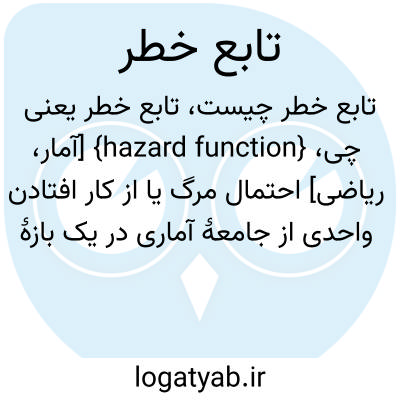 {hazard function} [آمار، ریاضی] احتمال مرگ یا از کار افتادن واحدی از جامعۀ آماری در یک بازۀ زمانی مشخص به شرط آنکه آن واحد در ابتدای این بازه زنده یا فعال باشد