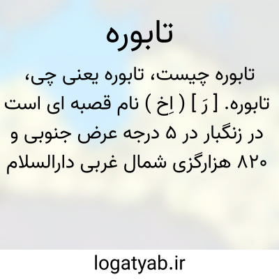 تابوره. [ رَ ] ( اِخ ) نام قصبه ای است در زنگبار در 5 درجه عرض جنوبی و 820 هزارگزی شمال غربی دارالسلام واقع است. بیشتر ساکنانش عرب مسلمان باشند. ( قاموس الاعلام ترکی ).