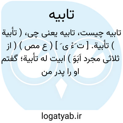 ( تأبیة ) تأبیة. [ ت َءْ ی َ ] ( ع مص ) ( از ثلاثی مجرد اَبَوَ ) ابیت له تأبیة؛ گفتم او را پدر من فدای تو باد. ( منتهی الارب ) ( ناظم الاطباء ). از غایت تواضعو یا محبت پدر خویش را فدای کسی کردن ( در گفتار ).