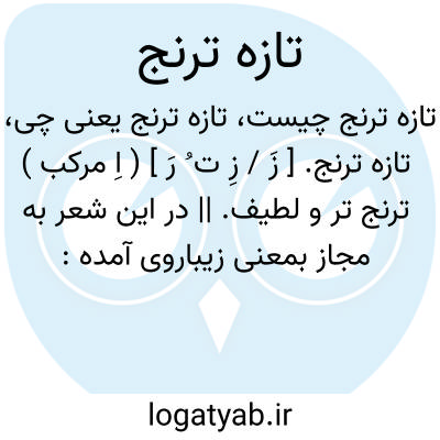 تازه ترنج. [ زَ / زِ ت ُ رَ ] ( اِ مرکب ) ترنج تر و لطیف. || در این شعر به مجاز بمعنی زیباروی آمده:
