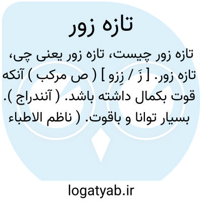 تازه زور. [ زَ / زِزو ] ( ص مرکب ) آنکه قوت بکمال داشته باشد. ( آنندراج ). بسیار توانا و باقوت. ( ناظم الاطباء ):