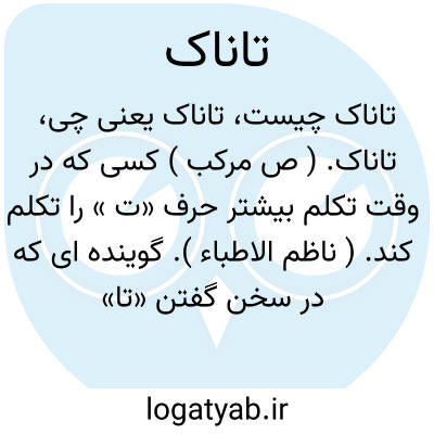 تاناک. ( ص مرکب ) کسی که در وقت تکلم بیشتر حرف «ت » را تکلم کند. ( ناظم الاطباء ). گوینده ای که در سخن گفتن «تا» بسیار آرد: تمتمه؛ سخن «تاناک » یا «میم ناک » گفتن. ( منتهی الارب ). تمتام؛ گوینده سخن «تاناک ». ( منتهی الارب ).