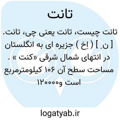 تانت. [ ن ِ ] ( اِخ ) جزیره ای به انگلستان در انتهای شمال شرقی «کنت ». مساحت سطح آن 106 کیلومترمربع است و120000 تن سکنه دارد. سرزمینی است حاصلخیز و کشاورزی آن بسیار خوب است و ساحل آن مورد توجه مردم است.