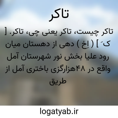 تاکر. [ ک َ ] ( اِخ ) دهی از دهستان میان رود علیا بخش نور شهرستان آمل واقع در 48هزارگزی باختری آمل از طریق رود بارک. ناحیه کوهستانی و سردسیر است و 430 تن سکنه دارد. آب آن از رودخانه بلده و محصول آن غلات، سیب زمینی و میوه و شغل مردم آنجا زراعت و گله داری است. دارای دبستان و راه آن مالرو است. ( از فرهنگ جغرافیایی ایران ج 3 ). رجوع به سفرنامه مازندران رابینو بخش انگلیسی ص 110 شود.
