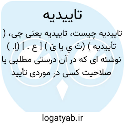 ( تأییدیه ) (تَ یِ یا یَ ) [ ع. ] (اِ. ) نوشته ای که در آن درستی مطلبی یا صلاحیت کسی در موردی تأیید شده باشد.