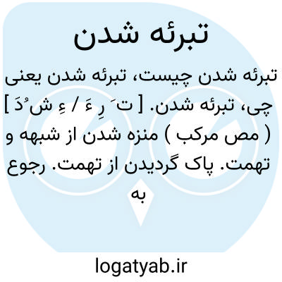 تبرئه شدن. [ ت َ رِ ءَ / ءِ ش ُدَ ] ( مص مرکب ) منزه شدن از شبهه و تهمت. پاک گردیدن از تهمت. رجوع به تبرئه و دیگر ترکیبهای آن شود.