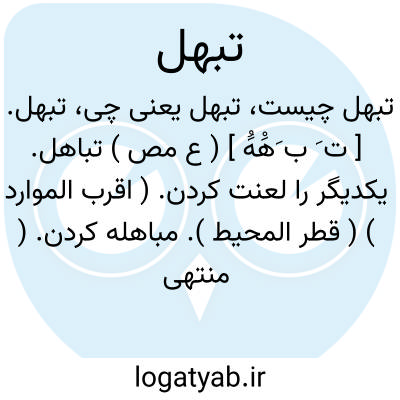 تبهل. [ ت َ ب َهَْهَُ ] ( ع مص ) تباهل. یکدیگر را لعنت کردن. ( اقرب الموارد ) ( قطر المحیط ). مباهله کردن. ( منتهی الارب ) ( ناظم الاطباء ). || رنج بردن در آنچه طلب شده است: تبهل فلان عنی بما یطلب. ( قطر المحیط ) ( اقرب الموارد ). والتبهل العناء بمایطلب. ( تاج العروس ج 7 ص 238 ). کوشیدن در دعا و اخلاص. ( شرح قاموس ). || بی نیازی از رغایب. ( منتهی الارب ) ( ناظم الاطباء ).