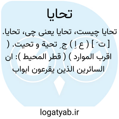لغت نامه دهخدا تحایا. [ ت َ ] ( ع اِ ) ج ِ تحیة و تحیت. ( اقرب الموارد ) ( قطر المحیط ): ان السائرین الذین یقرعون ابواب غرفات النور مخلصین صابرین یتلقاهم ملائکةاﷲ، مشرقین یحیونهم بتحایاالملوک... ( حکمت اشراق صص 244 - 245 ). و رجوع به تحیة شود.