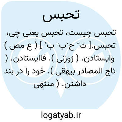 تحبس.[ ت َ ح َب ْ ب ُ ] ( ع مص ) وایستادن. ( زوزنی ). فاایستادن. ( تاج المصادر بیهقی ). خود را در بند داشتن. ( منتهی الارب ) ( ناظم الاطباء ) ( از قطر المحیط ) ( از اقرب الموارد ). || توقف در کلام. ( اقرب الموارد ).