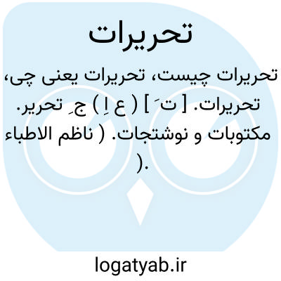 تحریرات. [ ت َ ] ( ع اِ ) ج ِ تحریر. مکتوبات و نوشتجات. ( ناظم الاطباء ).