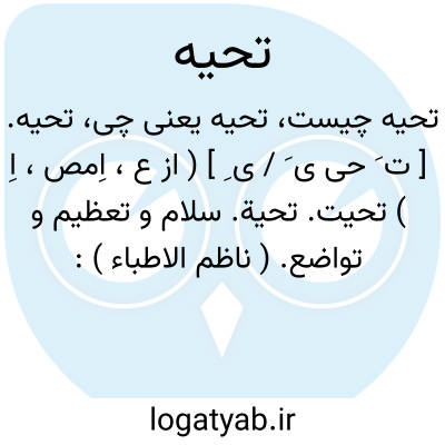 تحیه. [ ت َ حی ی َ / ی ِ ] ( از ع، اِمص، اِ ) تحیت. تحیة. سلام و تعظیم و تواضع. ( ناظم الاطباء ):