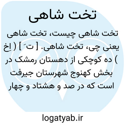 تخت شاهی. [ ت َ ] ( اِخ ) ده کوچکی از دهستان رمشک در بخش کهنوج شهرستان جیرفت است که در صد و هشتاد و چهار هزارگزی جنوب خاوری کهنوج و هفت هزارگزی باختر راه مالرو رمشک به گابریک واقع است و 10 تن سکنه دارد. ( از فرهنگ جغرافیایی ایران ج 8 ).