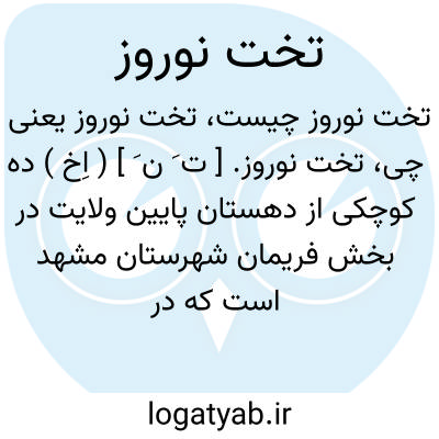 تخت نوروز. [ ت َ ن َ ] ( اِخ ) ده کوچکی از دهستان پایین ولایت در بخش فریمان شهرستان مشهد است که در هفتادوهفت هزارگزی شمال خاوری فریمان و بیست هزارگزی خاور شوسه ٔعمومی سرخس به مشهد قرار دارد. دامنه ای معتدل است و5 تن سکنه دارد. ( از فرهنگ جغرافیایی ایران ج 9 ).