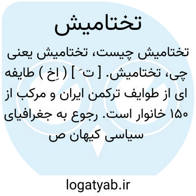 تختامیش. [ ت َ ] ( اِخ ) طایفه ای از طوایف ترکمن ایران و مرکب از 150 خانوار است. رجوع به جغرافیای سیاسی کیهان ص 104 شود.