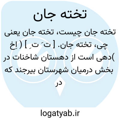 تخته جان. [ ت َ ت ِ ] ( اِخ )دهی است از دهستان شاخنات در بخش درمیان شهرستان بیرجند که در پنجاه وهشت هزارگزی شمال درمیان و هفده هزارگزی خاور شوسه عمومی قاین به درح قرار دارد. جلگه ای گرمسیر است و 625 تن سکنه دارد. آب آن از قنات و محصولش غلات و لبنیات و شغل اهالی زراعت و مالداری است.راه مالرو دارد. ( از فرهنگ جغرافیایی ایران ج 9 ).