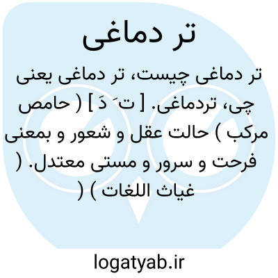 تردماغی. [ ت َ دَ ] ( حامص مرکب ) حالت عقل و شعور و بمعنی فرحت و سرور و مستی معتدل. ( غیاث اللغات ) ( آنندراج ). || بمعنی تازگی نیز آمده. ( غیاث اللغات ) ( آنندراج ). و رجوع به تردماغ شود.