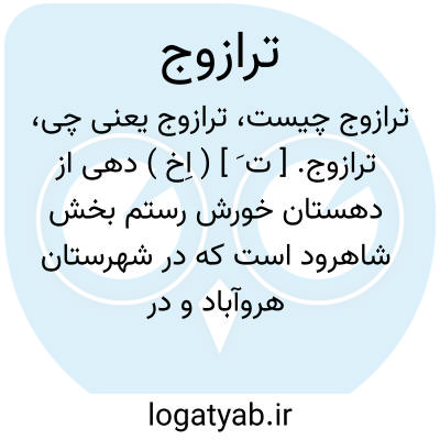 ترازوج. [ ت َ ] ( اِخ ) دهی از دهستان خورش رستم بخش شاهرود است که در شهرستان هروآباد و در 16هزاروپانصدگزی شمال هشجین و 8هزاروپانصدگزی شوسه هروآباد قرار دارد. کوهستانی و معتدل است و 354 تن سکنه دارد. آب آن از دو رشته چشمه و محصول آنجا غلات و سردرختی است. شغل اهالی گله داری و صنایع دستی آنان جاجیم بافی است.راه مالرو دارد. ( از فرهنگ جغرافیائی ایران ج 4 ).