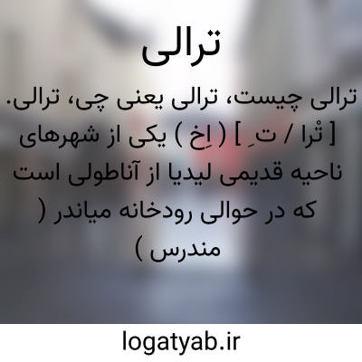 ترالی. [ تْرا / ت ِ ] ( اِخ ) یکی از شهرهای ناحیه قدیمی لیدیا از آناطولی است که در حوالی رودخانه میاندر ( مندرس ) قرار دارد و اکنون بنام سلطان حصاری معروف است. ( از قاموس الاعلام ترکی ). رجوع به ترال شود.